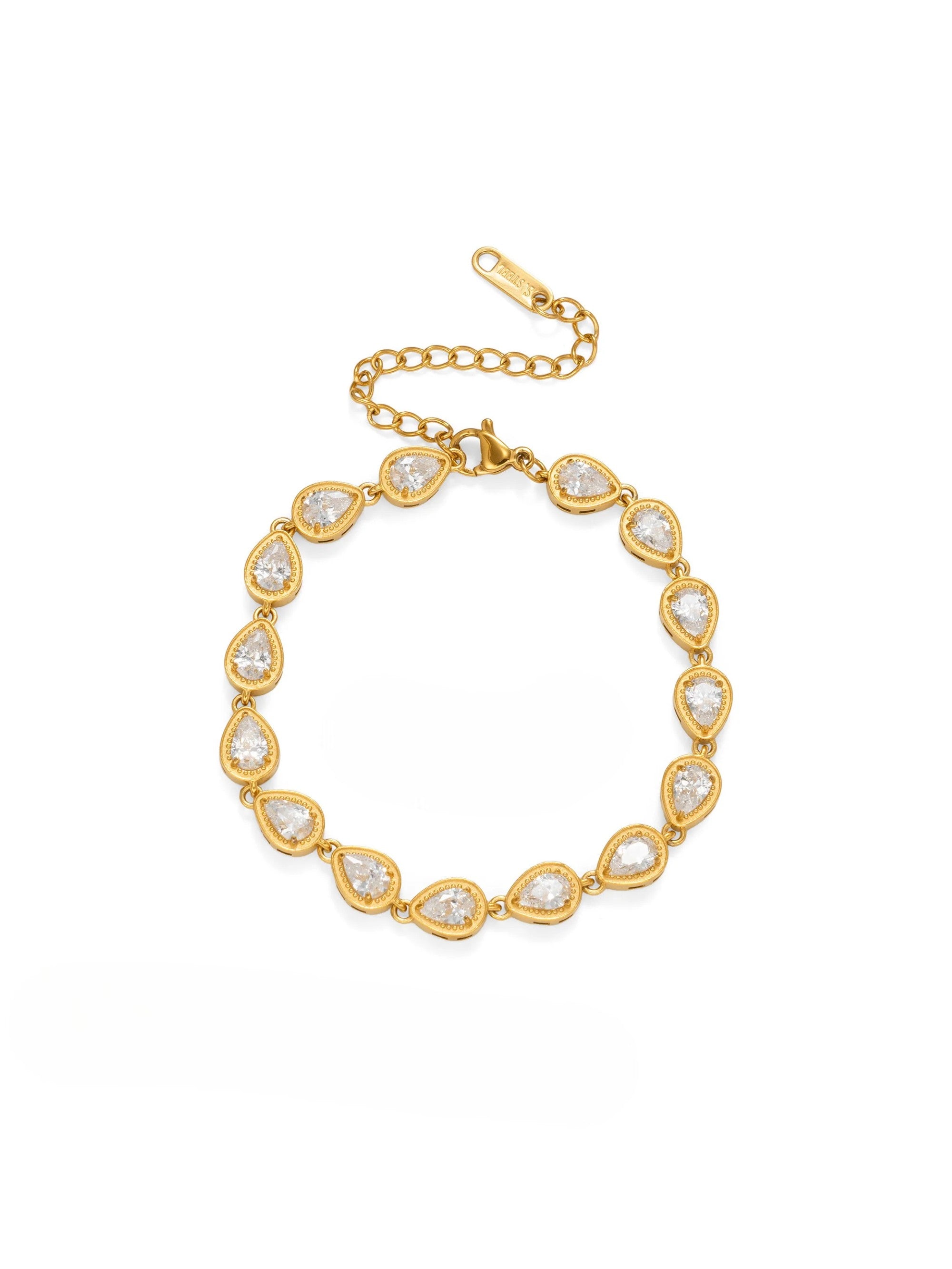 Material: 18k gold layer over stainless steel, cubic zirconia stones