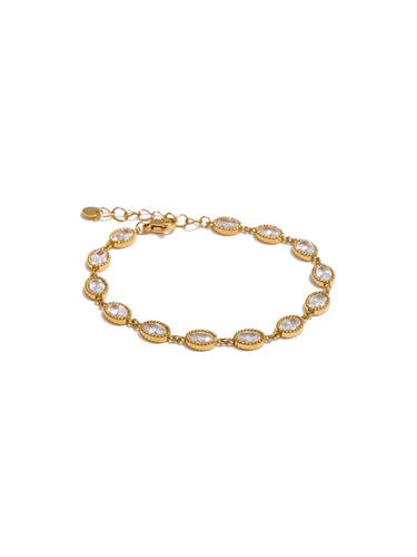 Material: 18k gold layer over stainless steel, cubic zirconia stones