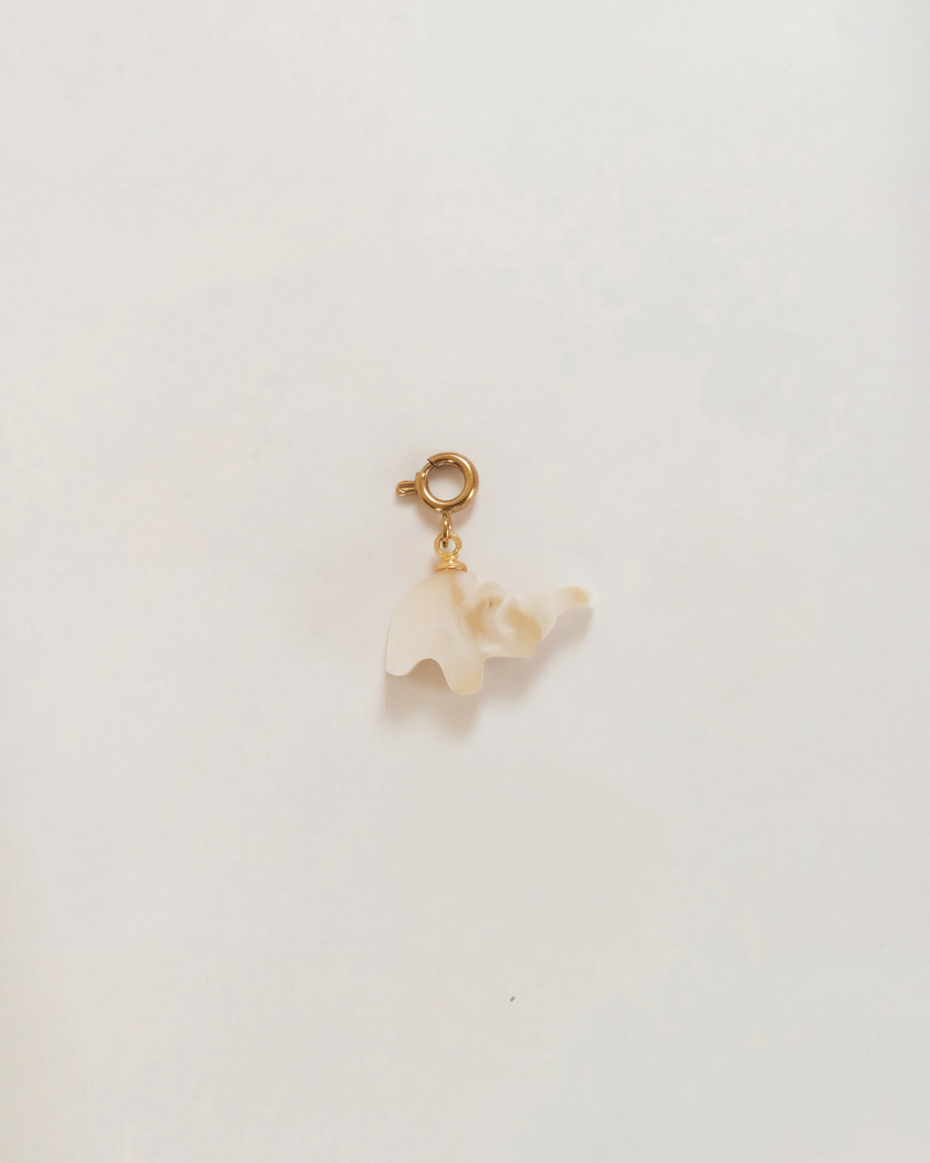 A cute mother of pearl natural stone baby elephant with a round spring clasp, designed to be used with our bag charm base (please find separate listing)