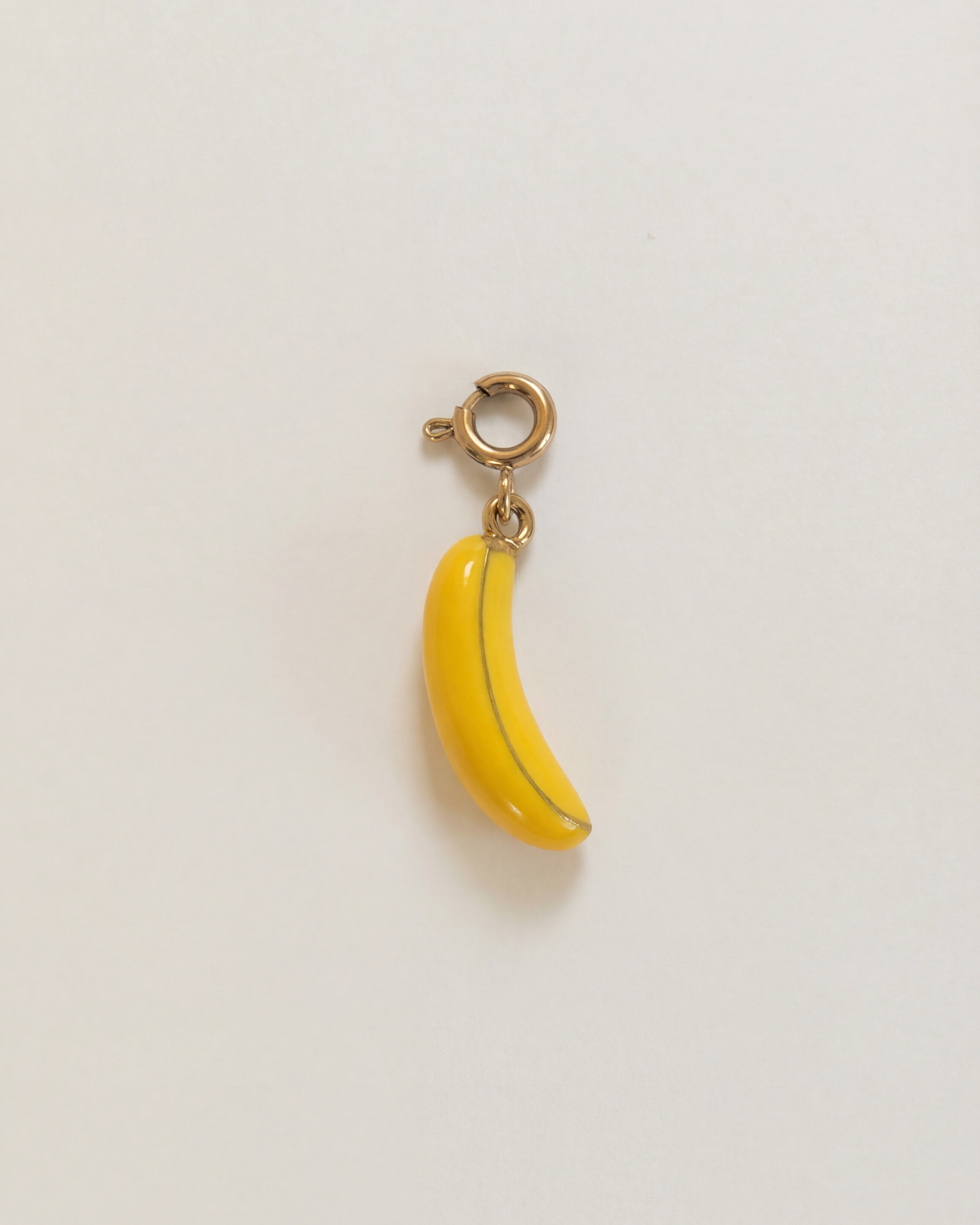 A vibrant yellow banana charm with a round spring clasp, designed to be used with our bag charm base (please find separate listing)