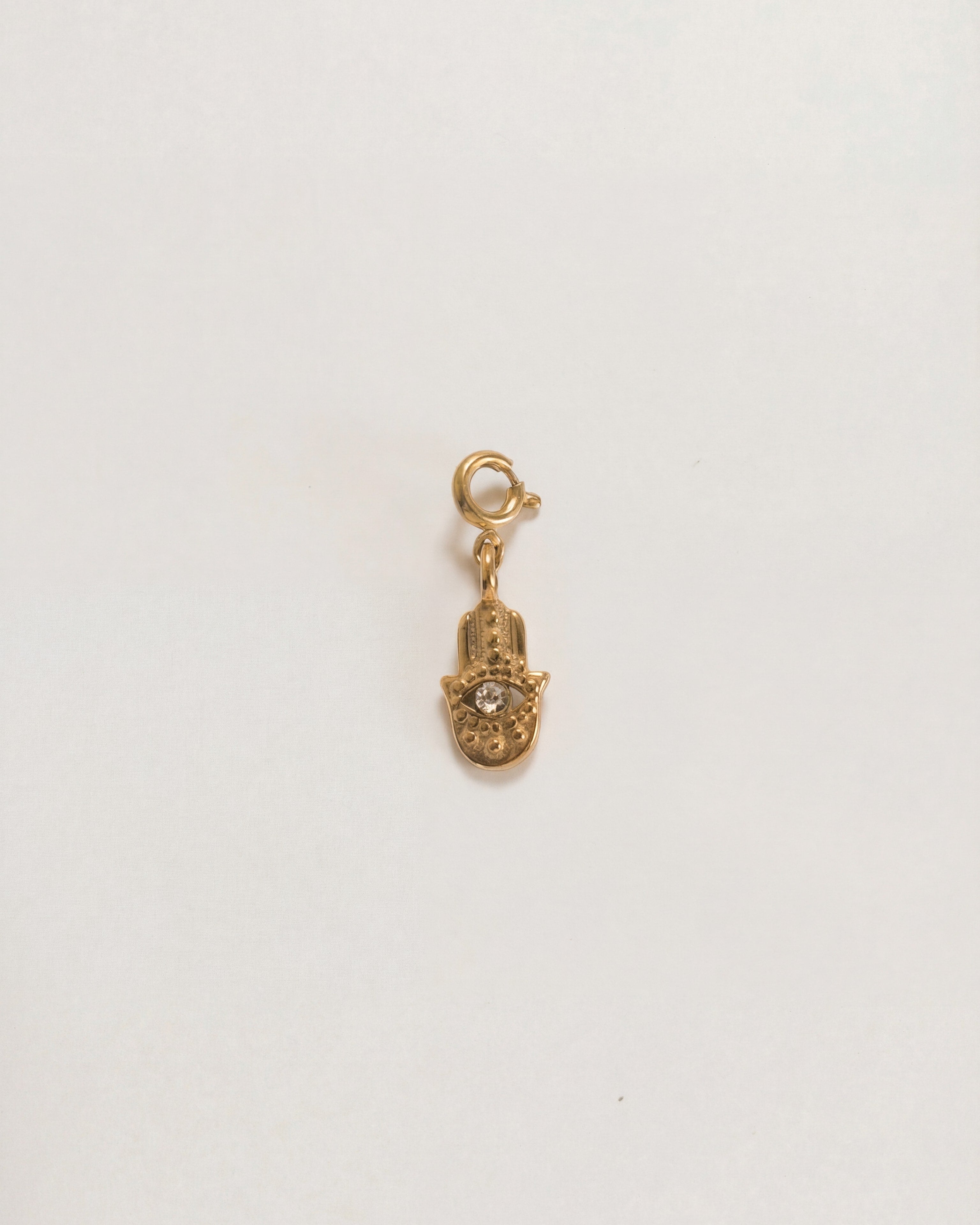 Traditional evil eye hamsa hand charm with a round spring clasp, designed to be used with our bag charm base (please find separate listing)