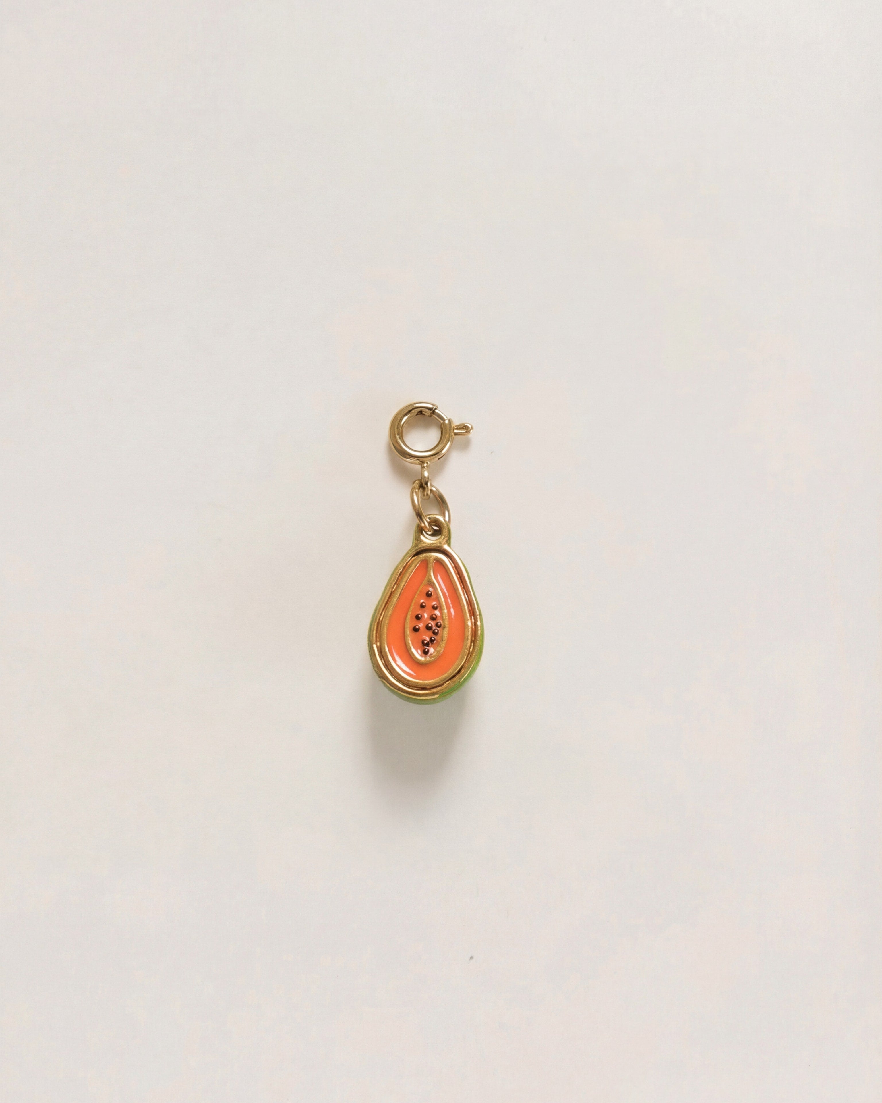 A vibrant papaya charm with a round spring clasp, designed to be used with our bag charm base (please find separate listing).
