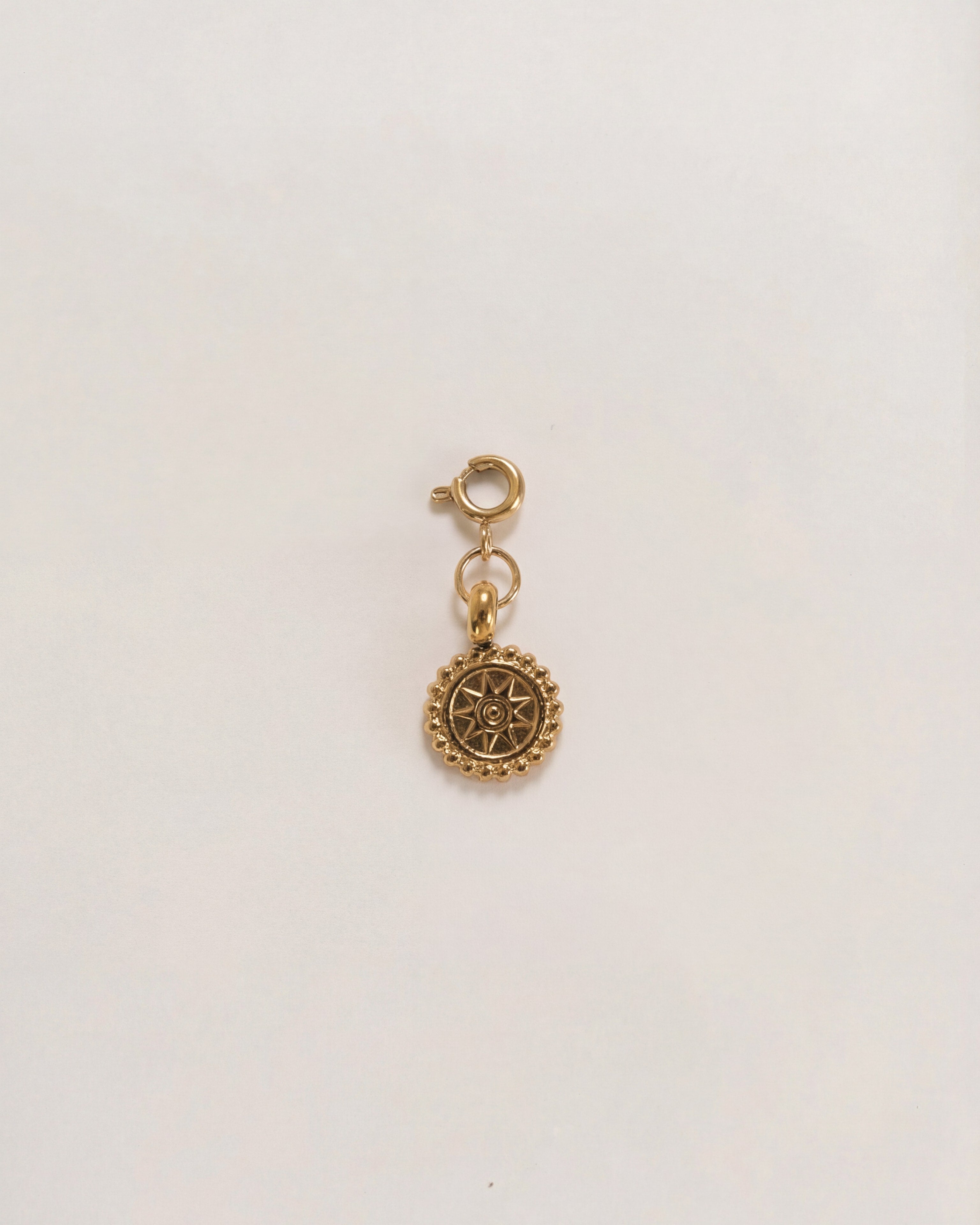 A sun charm with a round spring clasp, designed to be used with our bag charm base (please find separate listing).