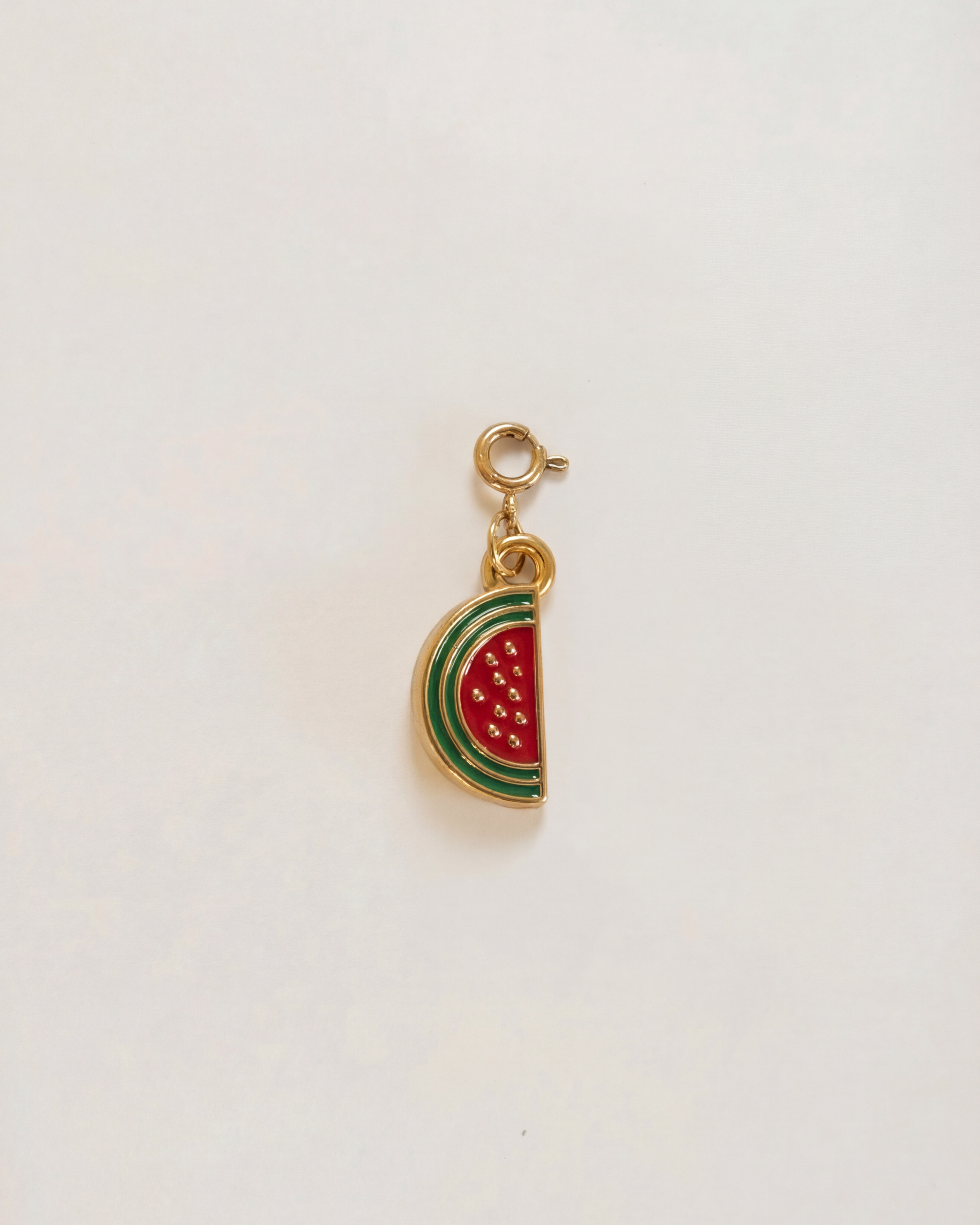 A vibrant watermelon charm with a round spring clasp, designed to be used with our bag charm base (please find separate listing).