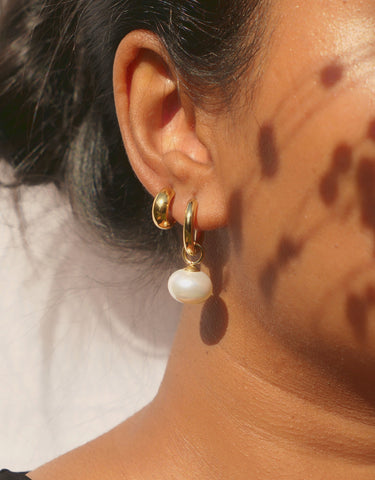 Imitation pearl drop hoops, the pearl is completely detachable allowing flexibility to wear these earrings in 2 ways!