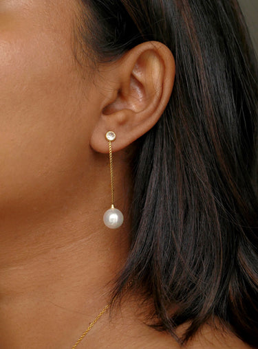 Minimal pearl drop studs with a beautiful CZ stone, perfect for bridesmaids or bridal outfit!