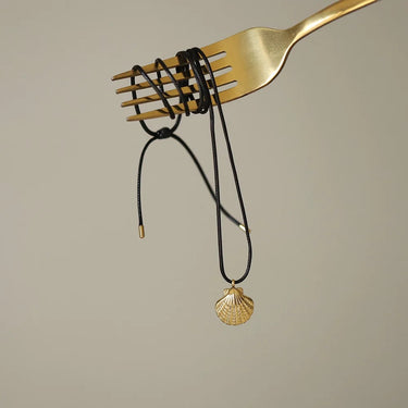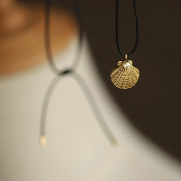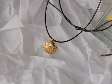 Gold clamshell pendant finished with leather cord necklace – completely adjustable