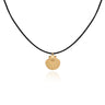 Material: Stainless Steel with 18k gold PVD coated pendant with leather cord necklace