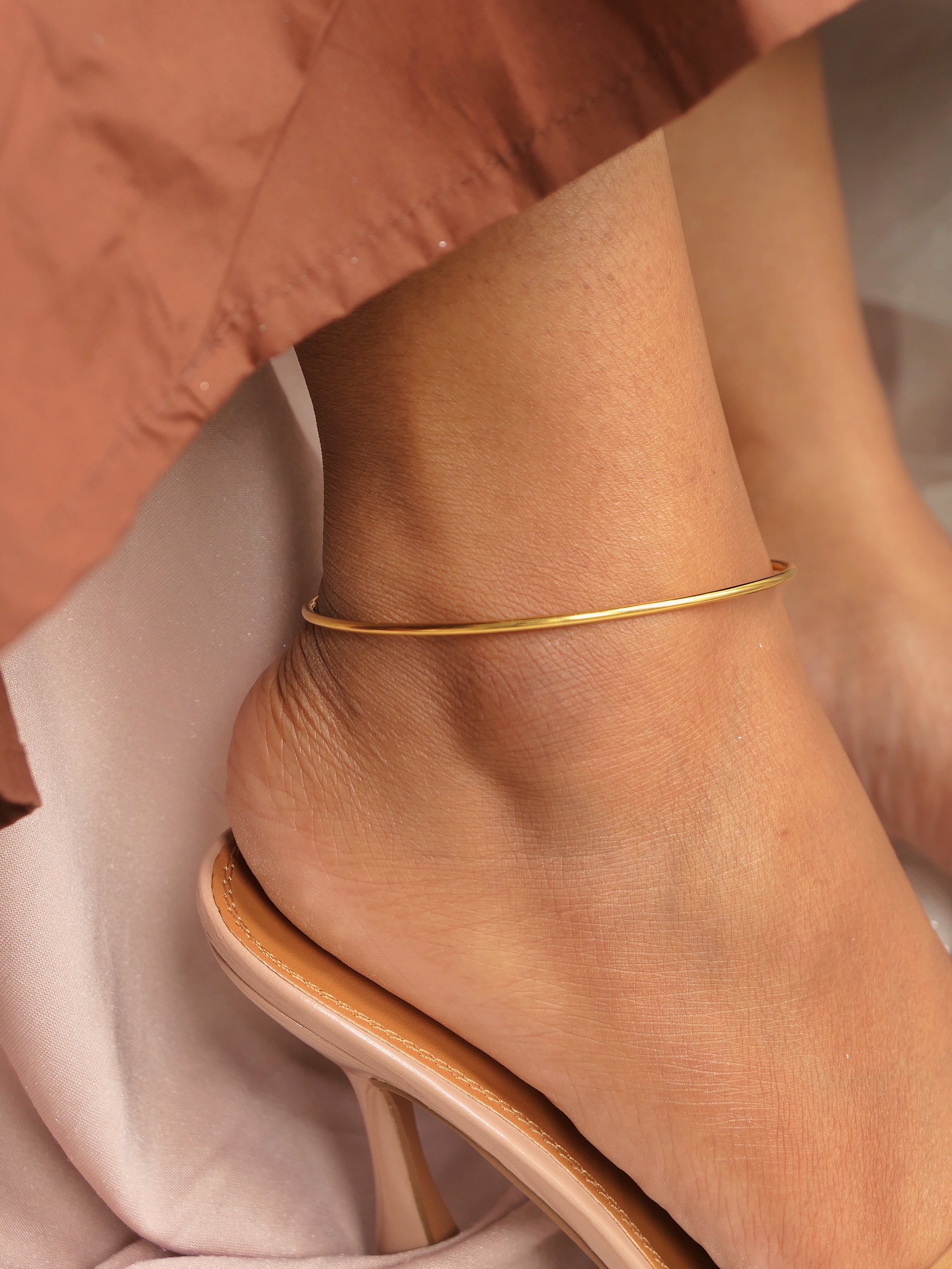 Inspired by the Rajasthani kada, this anklet keeps things simple with a sleek, modern cuff design that adds a subtle nod to South Asian heritage. Perfect for layering or wearing solo, it’s an effortless way to bring culture into your everyday look.